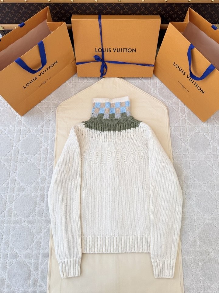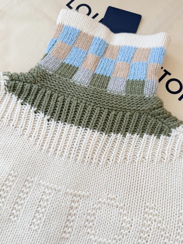 ✔ 하이넥 컬러블록 포인트 시그니처 가죽패치 디테일 프리미엄 니트공정