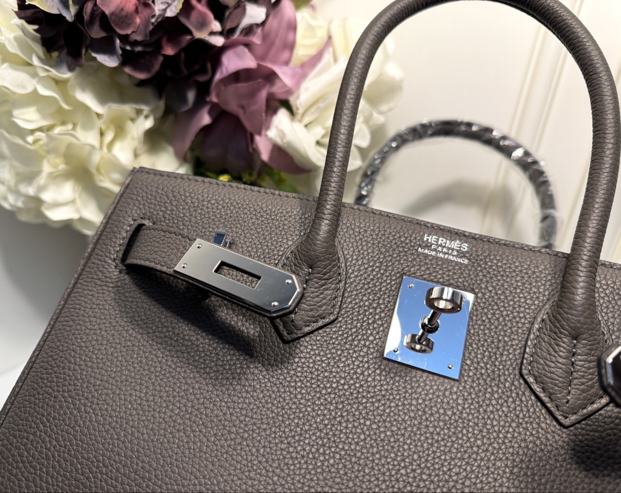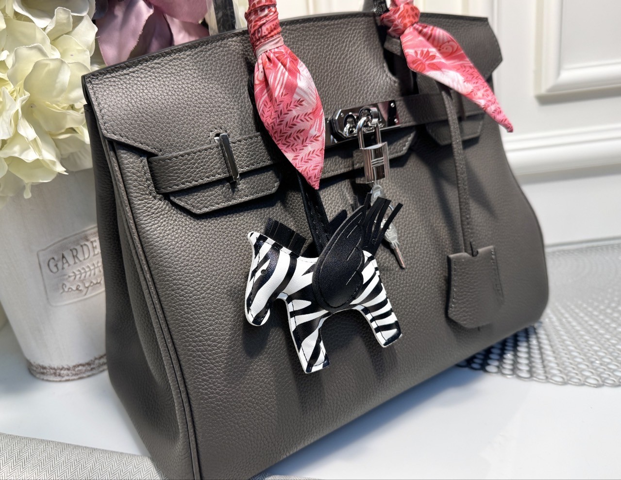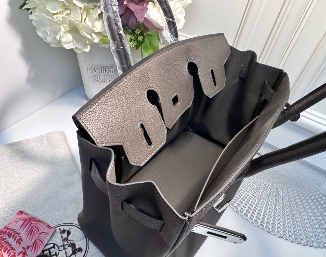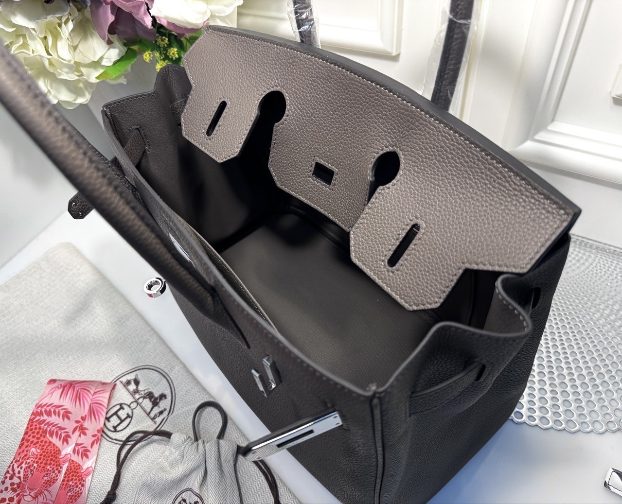 소재 : 클레망스 베이비카우 가죽 색상 : 그리스 에땅 / 하드웨어 은장 사이즈 : 30.0 x 22.0 x 16.0 cm