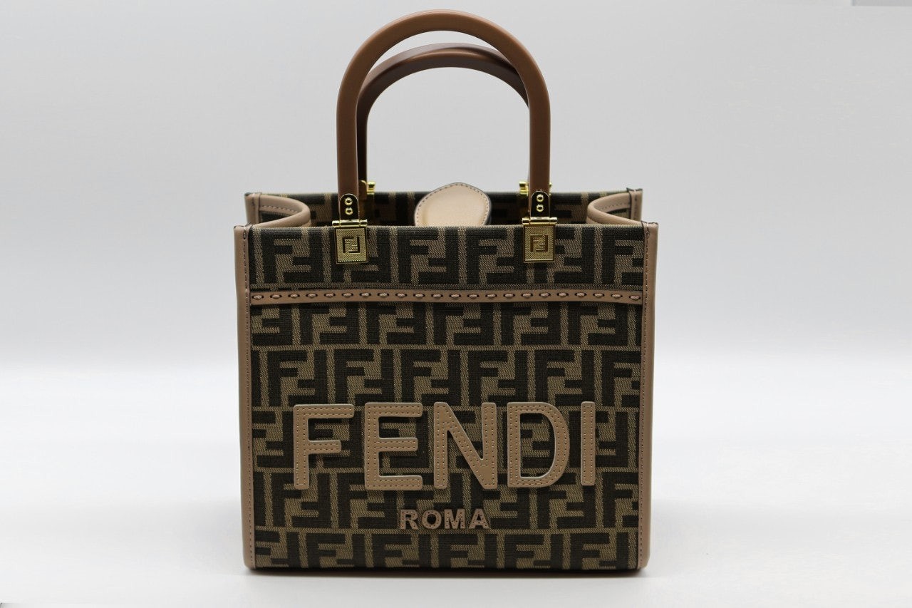 펜디 선샤인 스몰 쇼퍼백 브라운 자가드 패브릭 체스트넛
