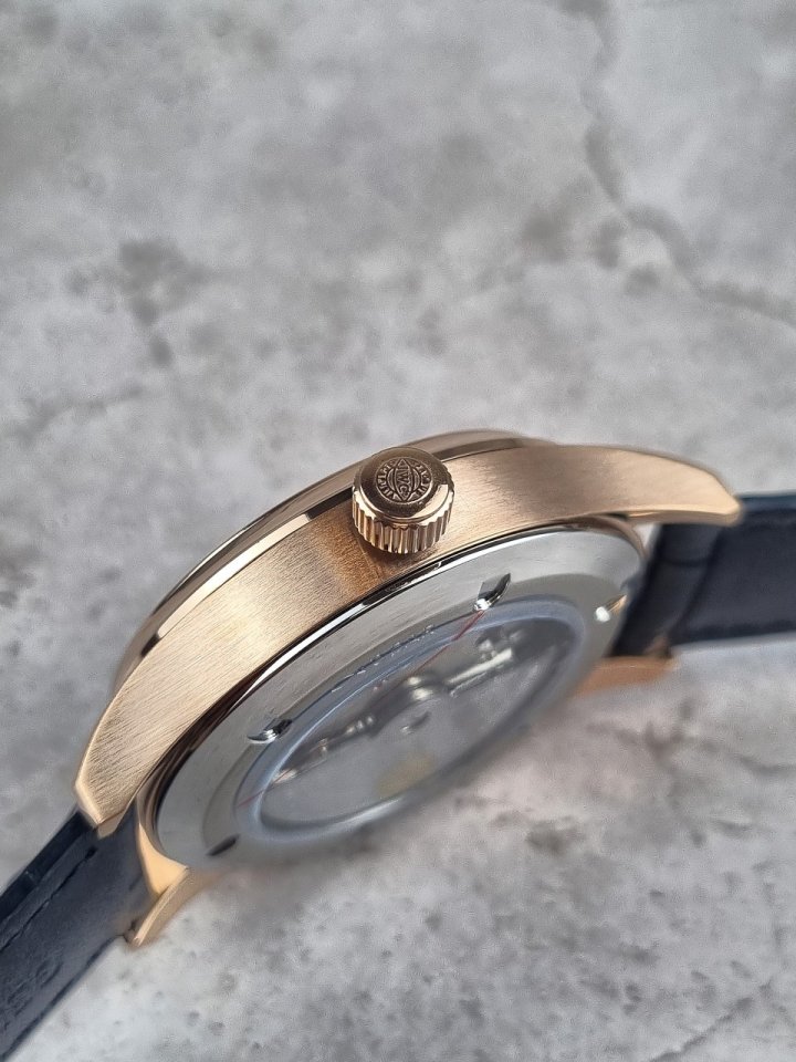 사파이어 글라스 사이즈 40mm 용두미포함 오토무브 316 고강도 스틸 천연 소가죽 스트랩 고급 우드케이스 포함