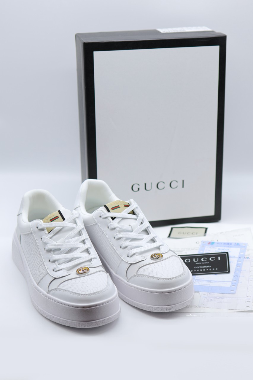 구찌 GG 엠보스 레더 남성 스니커즈 화이트