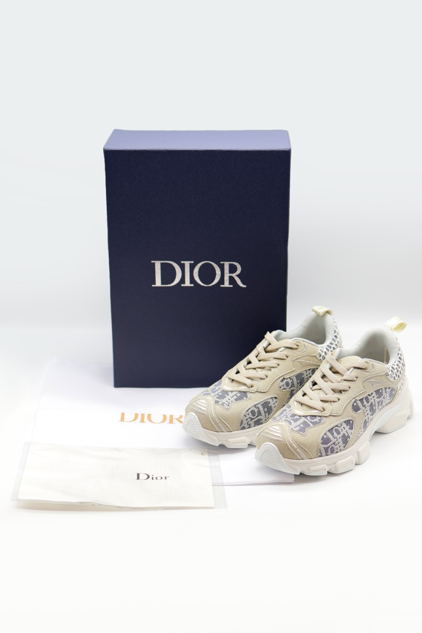 디올 바이브 샴브레이 오블리크 레더 스웨이드 스니커즈 블루
