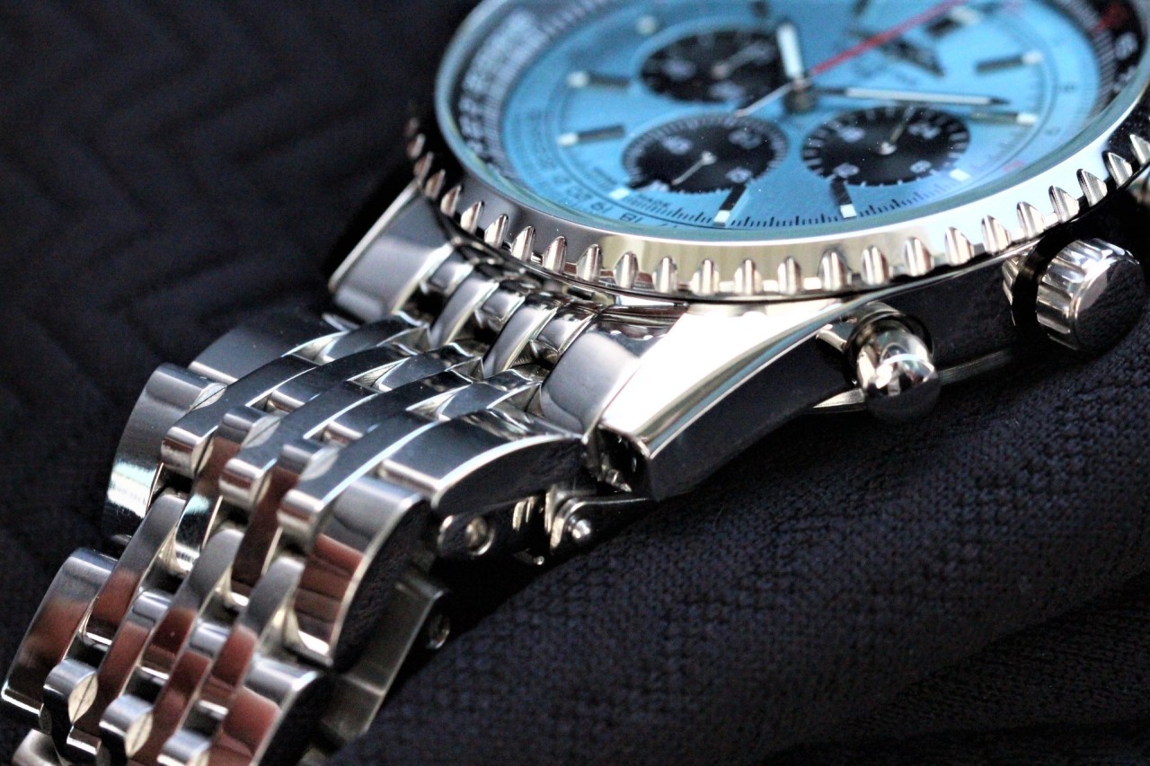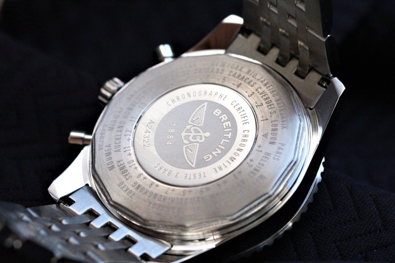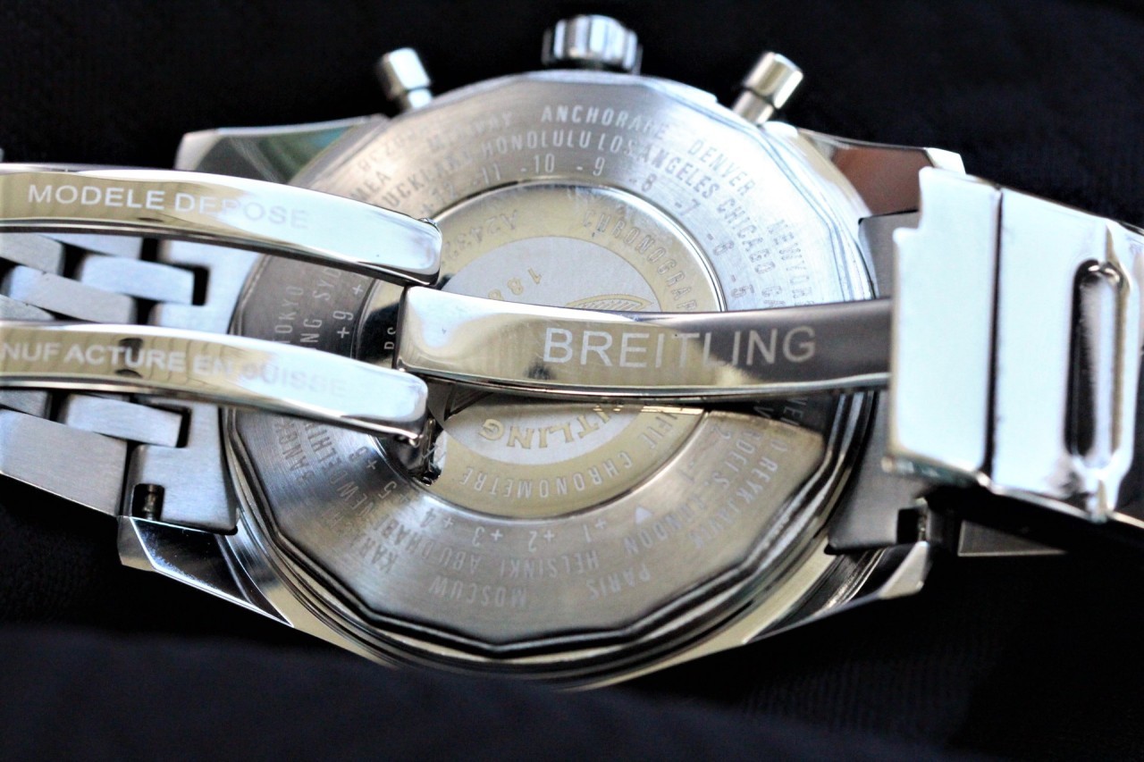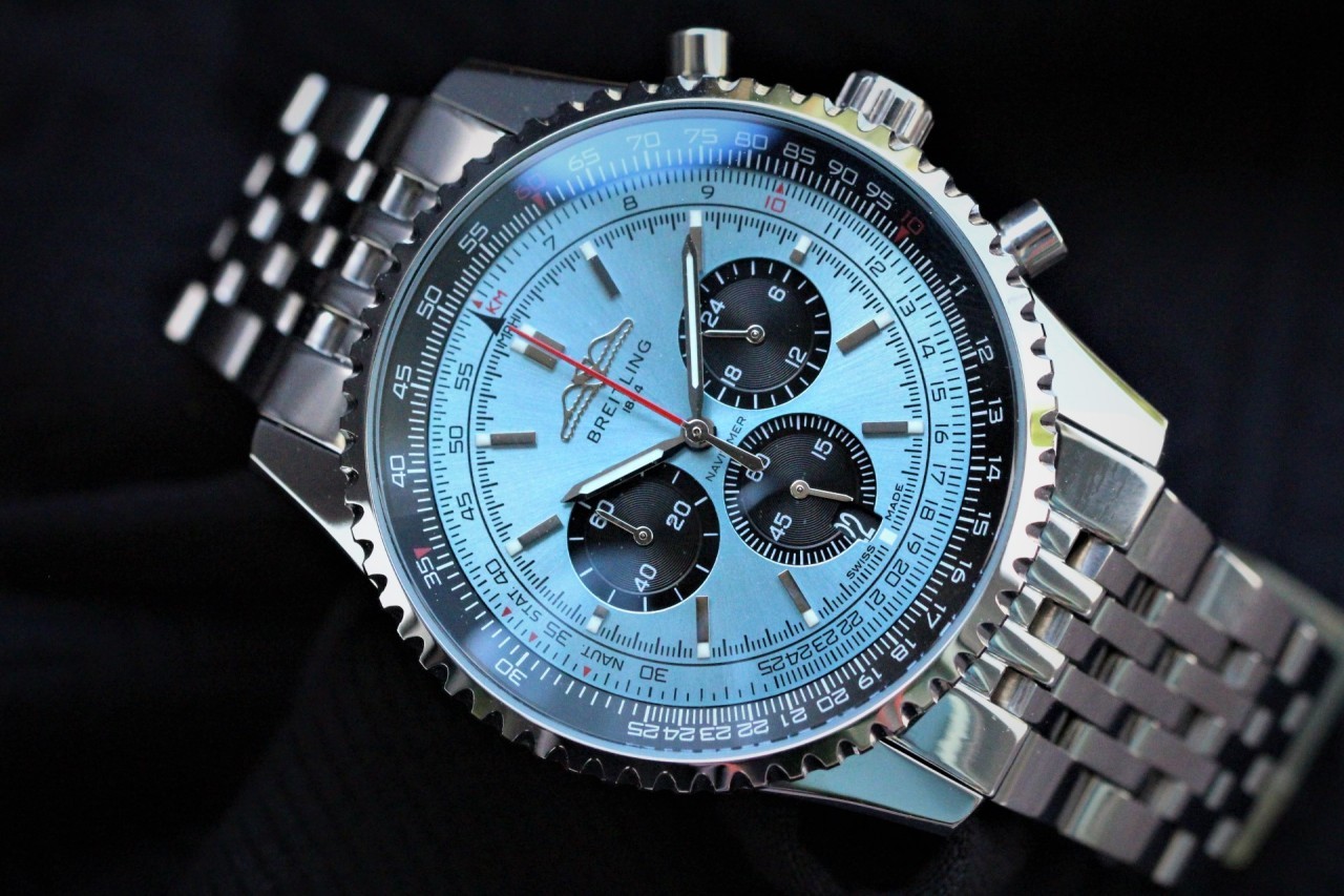 ●브라이틀링(Breitling)내비타이머B01 크로노그래프46 ●싸이즈46mm ●무브먼트 쿼츠 ●크리스탈 사파이어 탑재 ●야광판 탑재 ●크로노그래프 작동(리셋기능/스톱워치기능 탑재)