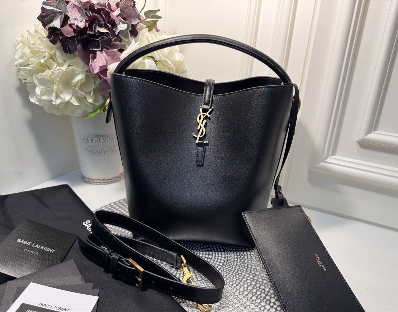 사이즈 :20.0 X 25.0 X 16.0 cm 색상 : 블랙 소재 : 유광 카프스킨 가죽 / 스웨이드 안감