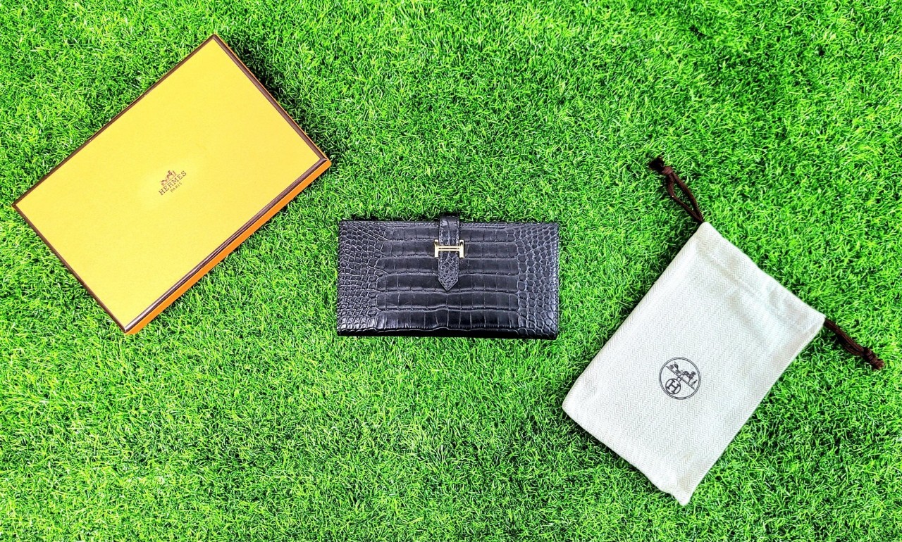 에르메스 베안 와니 엘리베이터(크로커다일) 블랙 금장 장지갑