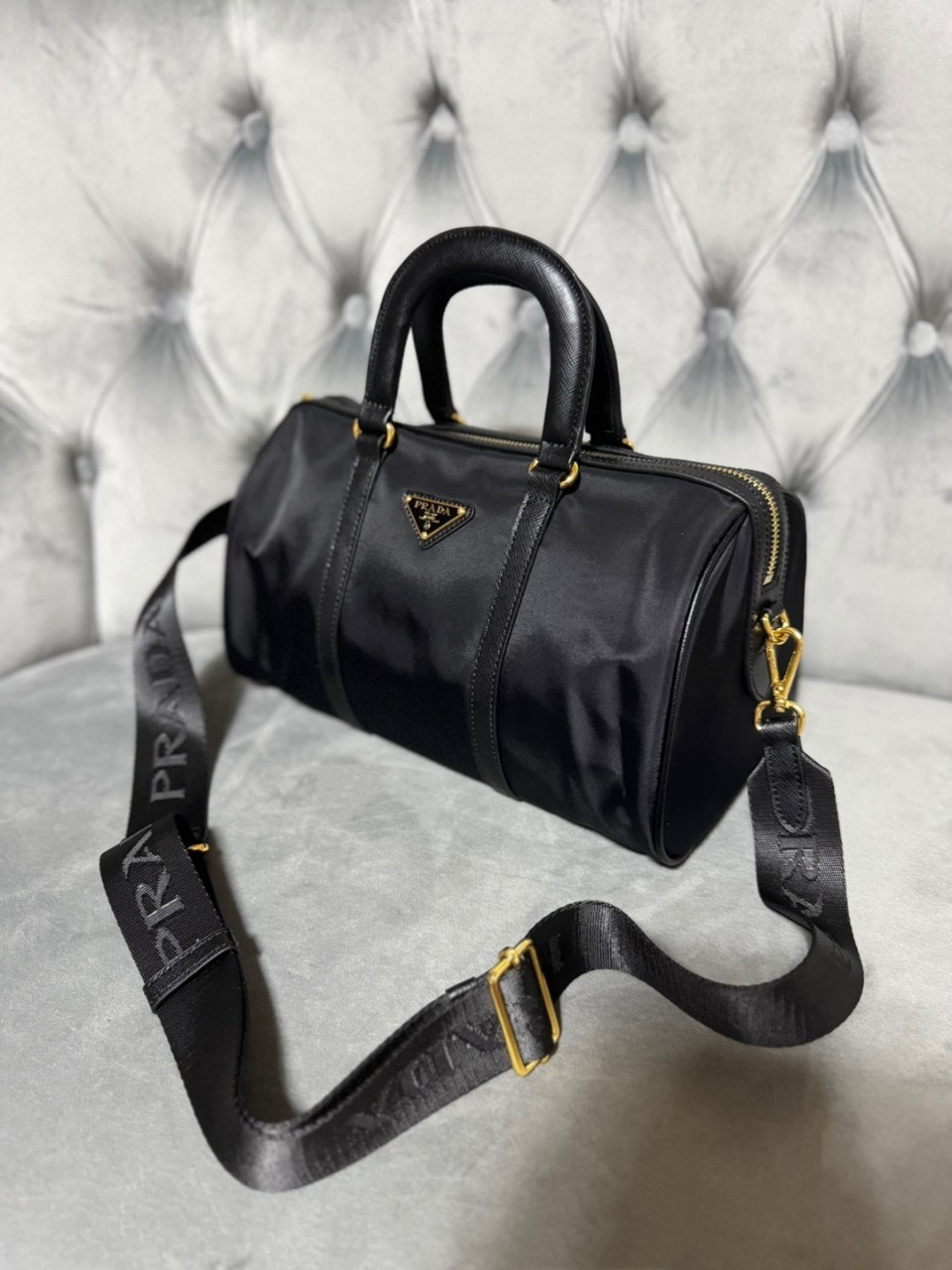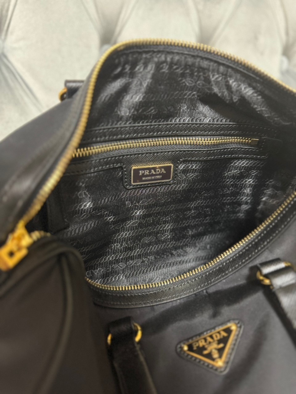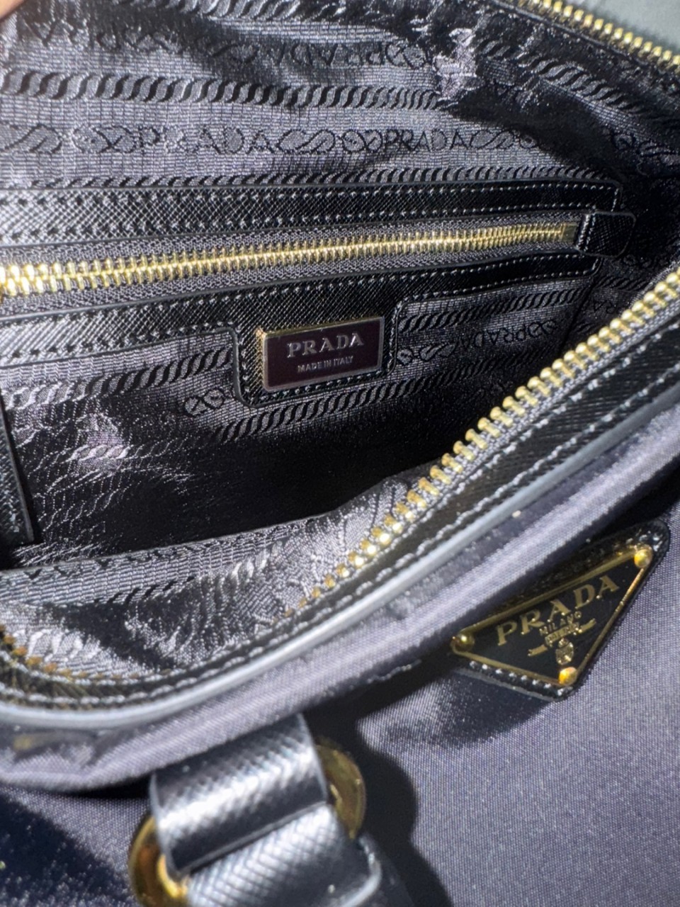 로고 프린트 리나일론 안감, 포켓 2개(1개는 지퍼식)